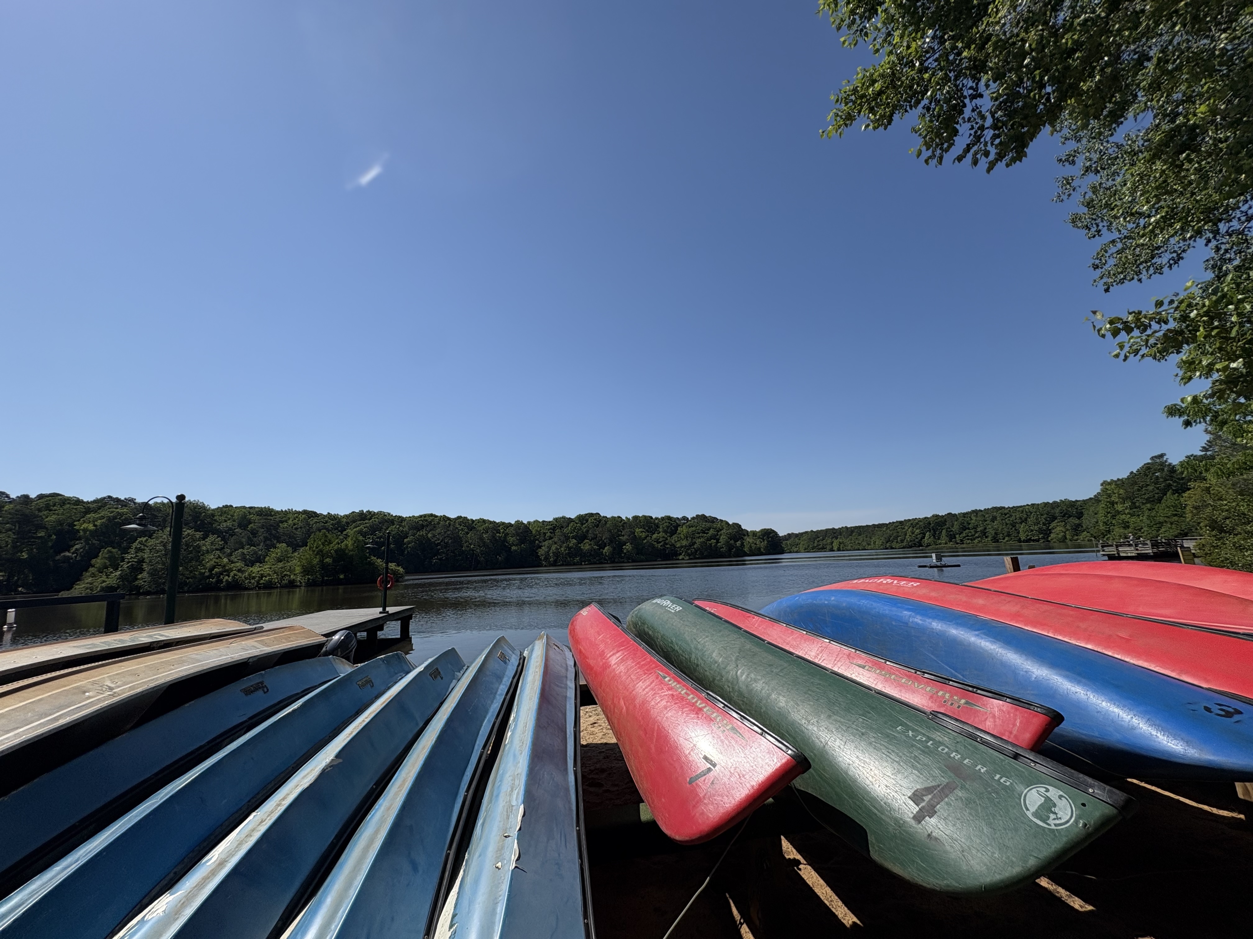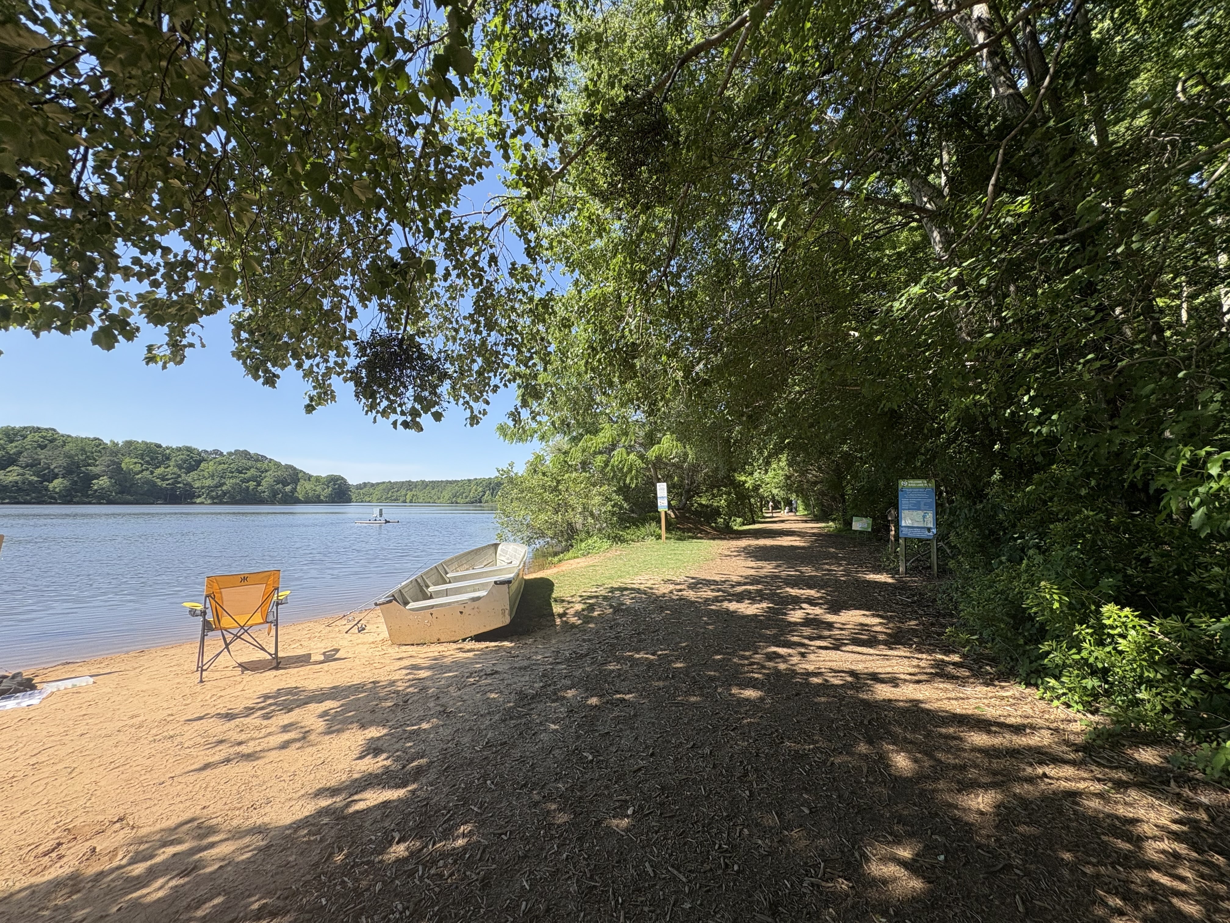 During the summer, you can rent canoes and small motorized boats daily, making it easy to enjoy the lake from the water. There’s also a small sandy beach area for kids to play, though swimming is not allowed.