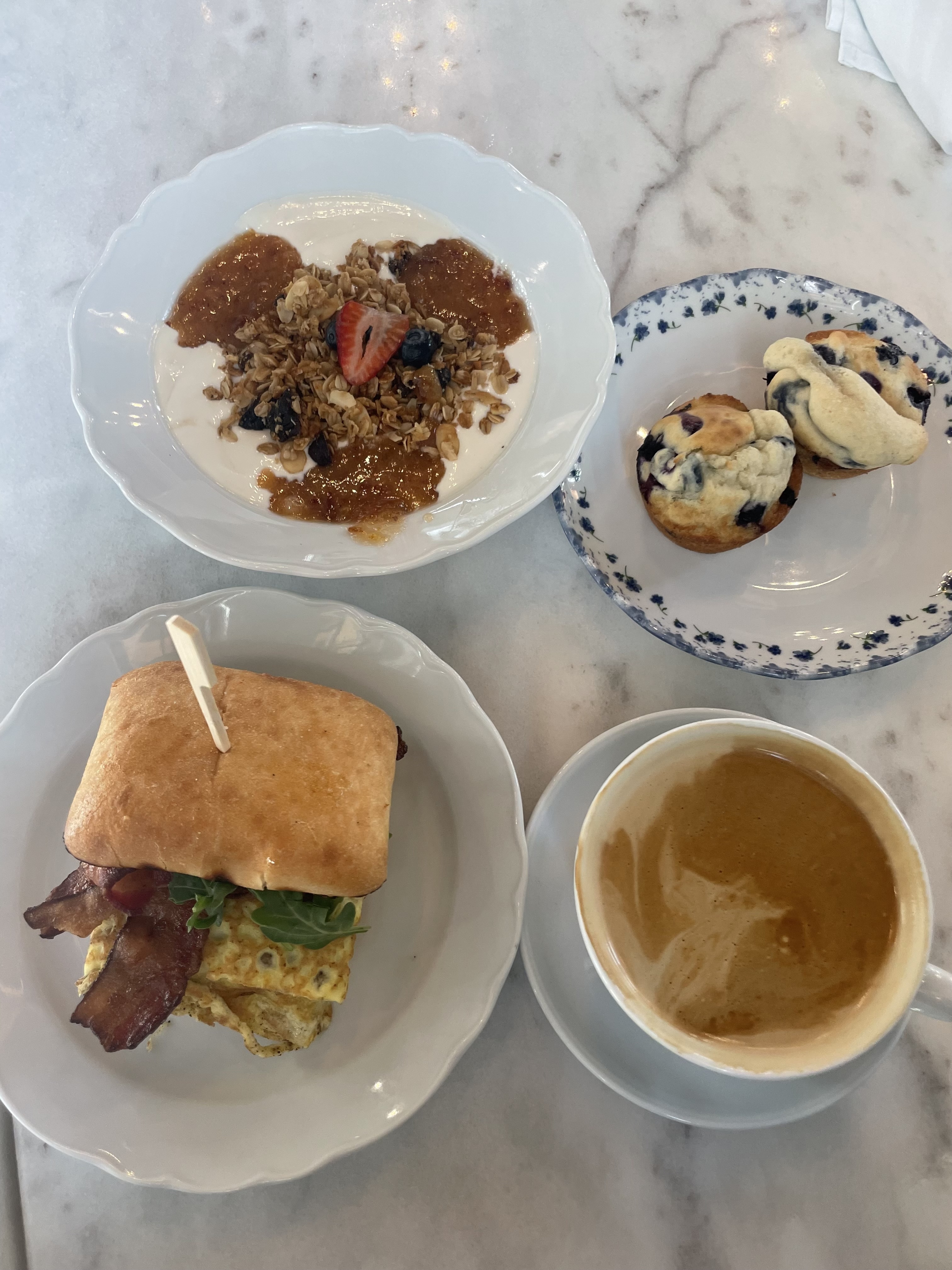 We had the breakfast sandwich with garlic aioli and pimento cheese and it was one of the best breakfast sandwiches we’ve ever had. We also got the yogurt parfait with their homemade jam, which was unreal. And the coffee + lattes? Some of the best in Raleigh.