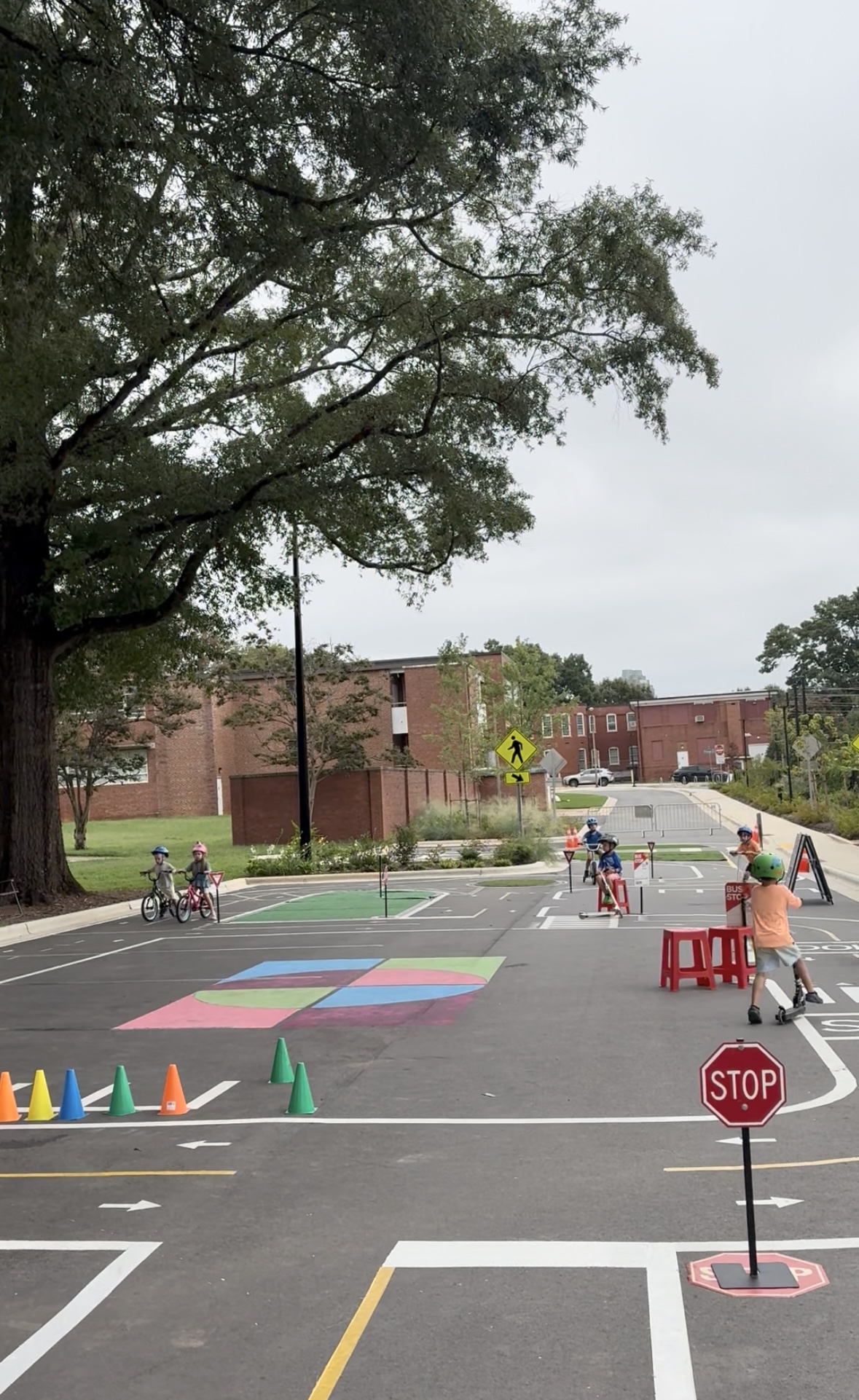 The Traffic Garden at Gipson Play Plaza in Dix Park is a unique space where kids can learn the basics of bike, pedestrian, and road safety! Designed like a miniature street system, it features colorful roads, intersections, stop signs, and bike lanes built at kid-scale. Kids can ride their bikes or scooters, or walk the paths, while practicing safe street habits.