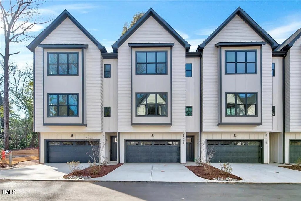 Every detail of this home has been carefully selected with a handsome, classic finish, including striking dark interior doors that add a touch of sophistication. Enjoy the best of both worlds with easy access to the greenway trail, RTP, Ridgewood Shopping Center, and the Village District—putting everything you need within reach. With over 3100 square feet, this home truly lives large. The spacious, side-by-side two-car garage offers direct entry to the home for maximum convenience. Step up to the rooftop terrace for breathtaking views and extra storage space, ideal for year-round enjoyment. Inside, you'll find expansive living areas that truly feel like single-family living, with a dedicated office space perfect for remote work or personal projects. The basement level boasts a large flex space with a full bathroom, providing endless possibilities for entertainment, guests, or even a home gym. Easy access to the outdoors on the main living level through the family room sliding door. This condo is a rare find, blending the comfort and privacy of single-family living with the ease and modern design of a new construction home. Don't miss your chance to own this stunning, one-of-a-kind property!