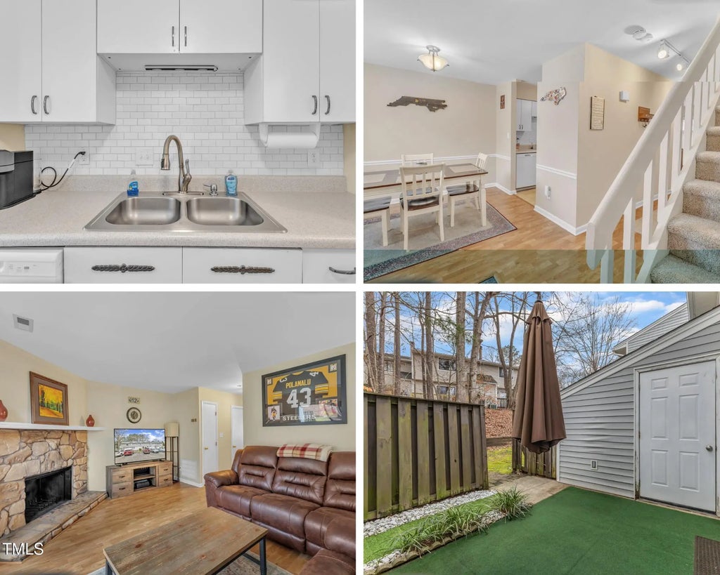 Move-in Ready with Fresh Updates! You'll love the location of this central Raleigh townhome which is only mins from shopping, restaurants, grocery stores & parks! Step into your freshly painted home with popcorn ceilings removed on the lower level and so much more! Enter through a private front patio with brick pavers into a bright and inviting space. The dining area features chair rail molding, while the living room offers a cozy wood-burning fireplace. The updated half bath includes a new vanity, toilet & fixtures! The kitchen shines with a newer dishwasher, sink, faucet, stove & tiled backsplash. Just off the kitchen, a convenient laundry nook with extra storage provides added efficiency! Upstairs, two freshly painted bedrooms w/& newer ceiling fans share a Jack & Jill bath w/newer cultured marble vanities. The primary bedroom offers double closets while the second bedroom features a walk-in closet with built-ins. Relax in your private, fenced backyard with updated landscaping. More storage outside of your unit. Enjoy community pool for summer fun! The community enjoys the Sandy Creek Greenway trail which is about 2 miles long! HOA covers water, sewer & trash, plus exterior maintenance outside fenced areas and the roof. In addition, our preferred lender is offering up to 1% in lender credit, which can be applied toward closing costs or to help reduce the interest rate.