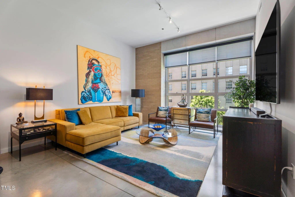 Unique Downtown Living in one of The Hudson's Largest Units. Experience distinctive living in downtown Raleigh with this exceptional 2-bedroom, 2-bath condo. This rare find blends historic charm with modern convenience, located on the 4th floor of The Hudson—a landmark from 1915 that once housed the beloved Hudson Belk department store. This spacious residence is part of a boutique, five-story condominium community thoughtfully converted in 2005. The interior features impressive design elements, such as soaring 12-foot ceilings and polished concrete floors, creating a sophisticated ambiance. It includes an open concept layout with two generously sized ensuite bedrooms featuring walk-in closets, alongside a sleek, modern kitchen seamlessly connected to the dining and living areas. A standout feature of this home is the fully enclosed, soundproof office pod, perfect for remote work, creative endeavors, or a peaceful retreat. Large windows in both the living room and primary suite bathe the space in natural light. The primary bedroom also offers two walk-in closets and a spacious ensuite bath. Residents benefit from secure building access, an outdoor courtyard, a fitness center, a storage unit, assigned garage parking, and water included by the HOA—all just steps away from Raleigh's finest dining, shopping, and entertainment options. Seller is offering one year paid HOA dues and an additional parking spot at City Park.