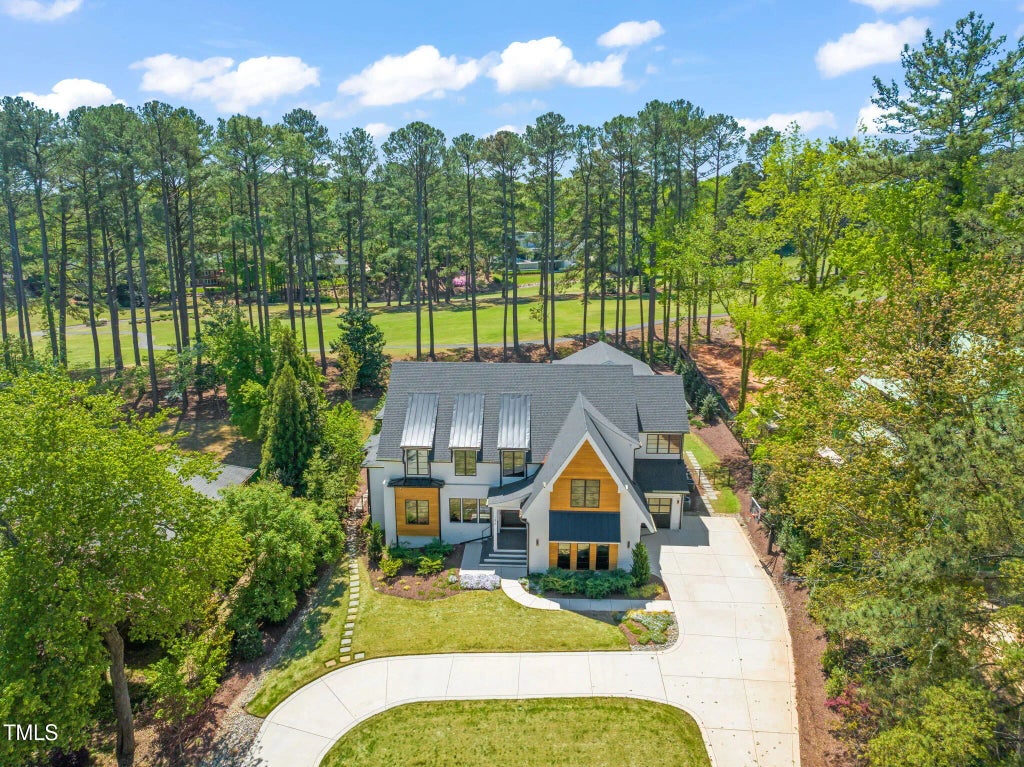 Step into elevated luxury in this custom-built masterpiece, perfectly positioned on the fairway of North Ridge's prestigious Oaks Course. Designed with both everyday comfort and high-end entertaining in mind, this home offers resort-style living in one of Raleigh's most sought-after communities. The outdoor retreat stuns with a heated saltwater pool, spa, and swim-up bar, plus a fully equipped kitchen with grill, refrigerator, ice maker, and kegerator. Enjoy evenings by the fire pit or unwind on the covered patio with heaters, fans, Phantom screens, and sleek landscape lighting. Accordion glass doors create a seamless transition between indoor and outdoor living. Inside, the gourmet kitchen is both functional and fabulous—featuring Thermador appliances, a waterfall island, pass-through window, and a hidden scullery with Nitro Cold Brew on tap. The first-floor owner's suite is a serene escape with a spa-like bath: soaking tub, open shower, and a designer closet with an island, lounge space, and custom lighting. A private office and guest suite round out the main level. Upstairs, enjoy four additional bedrooms, a fitness room, flexible lounge, and a game room with a full bar and dual kegerators, leading to a balcony with sweeping golf course views. The third floor hosts a state-of-the-art home theater with tiered seating, dual bars, and illuminated counters. A glass wine display, Control4 smart home automation, designer lighting, and wide-plank hardwoods elevate every corner. This home delivers luxury without limits—made for memorable moments, effortless entertaining, and everyday living at its finest.