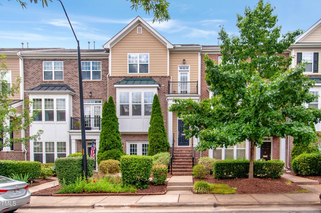 Welcome to this stunning 4-bedroom townhome! Step into the open living room and kitchen area featuring granite counters, a gas range, and stainless steel appliances. Enjoy meals in the formal dining room or the breakfast area with built-ins and access to the balcony for plenty of natural light. The cozy gas log fireplace adds warmth and charm. The spacious master suite offers a trey ceiling and a private bath with dual vanities, a separate tub/shower, and a walk-in closet. Additional amenities include a 2-car garage. Neighborhood pool & clubhouse. Conveniently located near RDU, shopping, dining, I-540, and Hwy 70, this home is perfect for modern living. Don't miss out on this incredible opportunity!