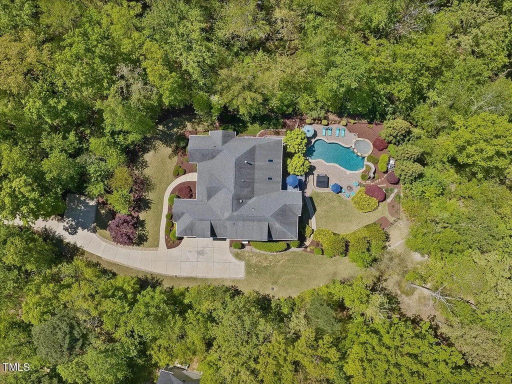 Discover timeless elegance and modern comfort in this private Cary 3.73 acre estate. Nestled on a beautifully landscaped lot with a fenced yard and saltwater pool, this custom home offers refined finishes, open-concept living, and extensive updates throughout. The main level features hardwood floors, 12-ft ceilings, a chef's kitchen with Jenn-Air appliances, and a luxurious owner's suite with a spa-style bath and custom closet. Also on the main floor you'll find two additional guest bedrooms with a Jack and Jill bath. Entertain year-round in the 3-season room featuring EZE Breeze panels, updated flooring and beautiful skylights. Upstairs you will find an additional guest bedroom with a beautifully tiled full bath and a large bonus room with wet bar and custom storage and built-ins. Downstairs is a fully finished basement that is absolutely perfect for entertaining. A second kitchen awaits with beautiful cabinets and granite counters. A large rec room is big enough for the whole family and features doors out to the backyard oasis. You'll also find a gym, music room, multiple flex rooms and additional bathrooms. This home would be perfect for in-laws or multi-generational living. The outdoor entertaining area is where this home shines - large patio spaces, inground heated salt water pool with waterfall, tanning shelf and slide! Landscaping lighting, tiki bar and above ground hot tub - something for everyone! Note that property is 6,224 finished square feet, including basement gym and flex room with bar (793 sq.ft) finished/renovated without a permit. Call today for a private showing of this amazing property!