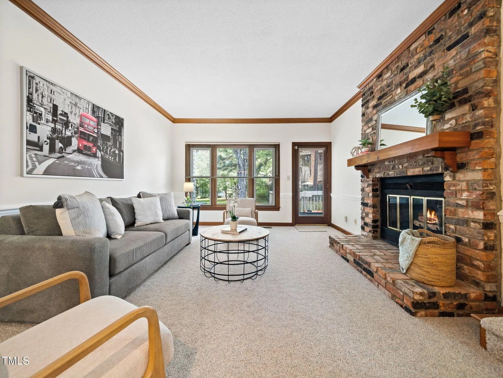 Welcome to this impeccably maintained 4 bedroom, 2.5 bath townhome nestled in the desirable Stonehenge community! Offering a versatile floor plan, this home is designed for comfortable, low-maintenance living. The main-level primary suite features dual closets and the ensuite includes a beautifully renovated walk-in shower. A second bedroom on the main floor provides the perfect space for guests, a home office, or a cozy den. The bright kitchen boasts soft-close cabinetry, tile backsplash, Bosch dishwasher, and GE microwave -ideal for home chefs and entertainers alike. The open-concept living and dining area is bathed in natural light and anchored by a charming masonry gas fireplace. Step out from the living room or primary suite onto a spacious deck overlooking a peaceful pond -an ideal spot to relax or host guests. Upstairs, you'll find two generously sized bedrooms, a full bath, and a large walk-in attic offering excellent storage or potential for future expansion. Improvements include fresh interior paint on the main level & in the third bedroom, a new vapor barrier (2025), roof, exterior paint, & gutter guards (2024). HVAC systems were replaced in 2018 & 2019, & the water heater was replaced in 2018. The HOA covers exterior maintenance & landscaping for easy, low-maintenance living. Ideally located near shopping, dining, & major commuter routes, this move-in ready home is a rare find in one of Raleigh's most sought-after neighborhoods.