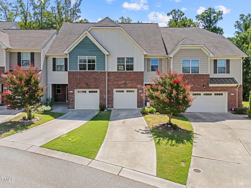 Welcome to this beautifully maintained and spacious townhome located in a highly desirable Cary community. As you enter, you're greeted by a welcoming foyer that leads into an open-concept main living area. Hardwoods grace the main level. The kitchen offers ample cabinet space, granite countertops, tile backsplash, pantry, stainless steel appliances, and a gas range. The oversized kitchen island is perfect for meal prep or entertaining! The kitchen overlooks a cozy living room with a gas fireplace and built in bookshelves. The second floor features two generously sized bedrooms, each with its own private ensuite bath and walk-in closet, making them ideal as dual primary suites. The large laundry room is located on second floor with extra cabinet storage space above washer/dryer. The third floor features a private third bedroom, complete with a full bathroom and a walk-in closet. This flexible space can easily serve as a bonus room, home office, exercise area, or guest suite. Three zone HVAC. Don't miss all the incredible storage this home has to offer... including walk-in closets, walk-in attic space, a garage, and extra storage tucked beneath the first-floor staircase. The expansive driveway (one of the longest in the neighborhood) offers parking for two cars in addition to a garage space. Enjoy the screened-in porch overlooking a tree-lined backyard offering privacy. Just beyond the trees, you'll find the greenway trail for easy access to nature and outdoor activities right from your doorstep. This home is conveniently located to shopping, dining, RDU, RTP, the Lenovo Center and so much more!