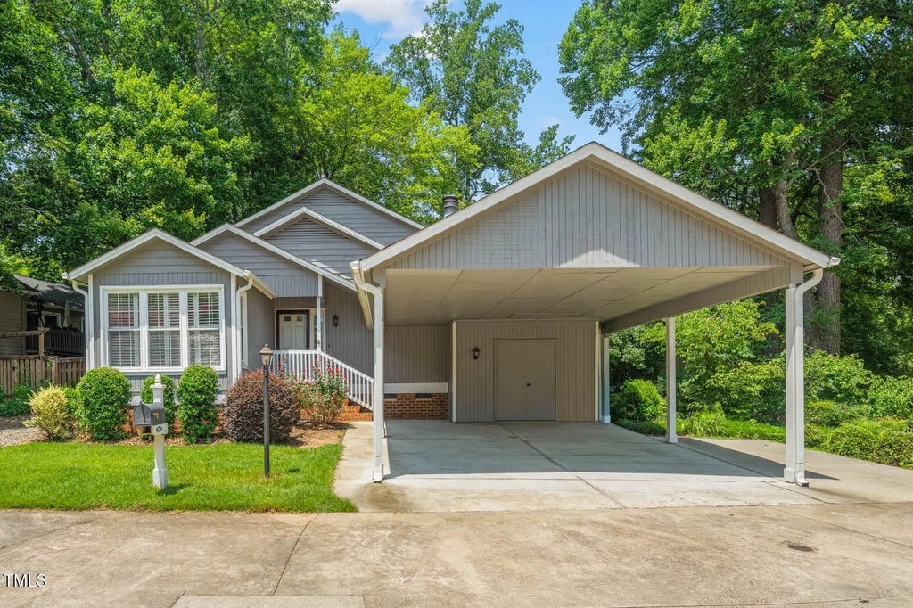 OVER $26K IN RENOVATIONS!! Fresh paint, new LVP and carpet, new light fixtures and more, see Document! Location, location, location! Just minutes away from shopping, dining and entertainment as well as Rex Hospital, Carter Finley Stadium, Lenovo Center and the future Lenovo Center Entertainment District. Welcome to this delightful 1.5-story home featuring new carpet and LVP flooring along with freshly painted interior, two spacious primary suites—one on the main floor with a private office/sitting room with dual closets, and a second upstairs for added flexibility and privacy. The vaulted living room offers a warm welcome with a gas log fireplace and direct access to a large screened-in porch complete with skylights and a charming porch swing—perfect for relaxing or entertaining. The adjacent dining area flows into a cook-friendly vaulted kitchen boasting abundant counter space and ample cabinet storage. Enjoy easy living with a 2-car carport. A rare blend of comfort and convenience waiting for your own personal touches!
