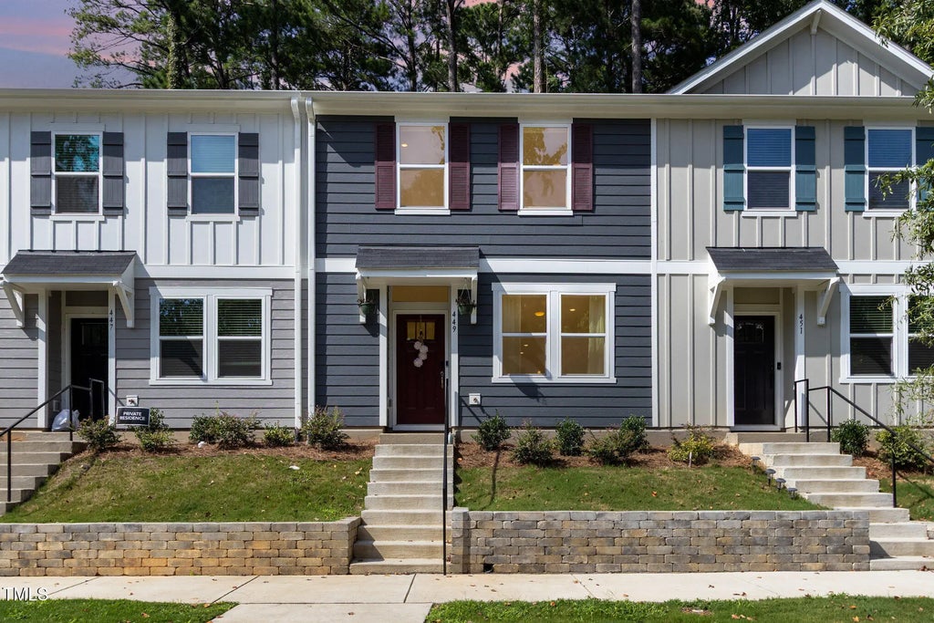 Seller is motivated and accepting all offers. Built in 2023, this beautifully maintained 3BR/2.5BA townhouse offers modern style, energy efficiency, and a prime location! The open floor plan features 9-ft ceilings and durable LVP flooring on the first floor. The stunning kitchen boasts quartz countertops, an upgraded farmhouse sink, a Samsung Bespoke Refrigerator with beverage center (conveys with sale), pantry, and all Energy Star appliances. Upstairs, the spacious primary suite includes a walk-in closet and spa-like bath with walk-in shower and dual vanities. Convenient 2nd-floor laundry comes with an Energy Star Maytag washer/dryer Conveys with sale). Ceiling fans in every bedroom and the living area provide comfort year-round. Enjoy the peaceful backyard that backs to woods, complete with an extended 8x10 patio and exterior storage room. Smart home features include a Ring alarm system, Pro Doorbell, and rear solar-powered camera with optional monitoring. HOA ($145/mo) covers exterior maintenance (including roof & siding), scheduled painting, trash, and dog stations. Excellent investment opportunity — units rent around $1,800/month and investors can rent immediately. Just minutes to Downtown Raleigh, NC State, and Wake Tech!