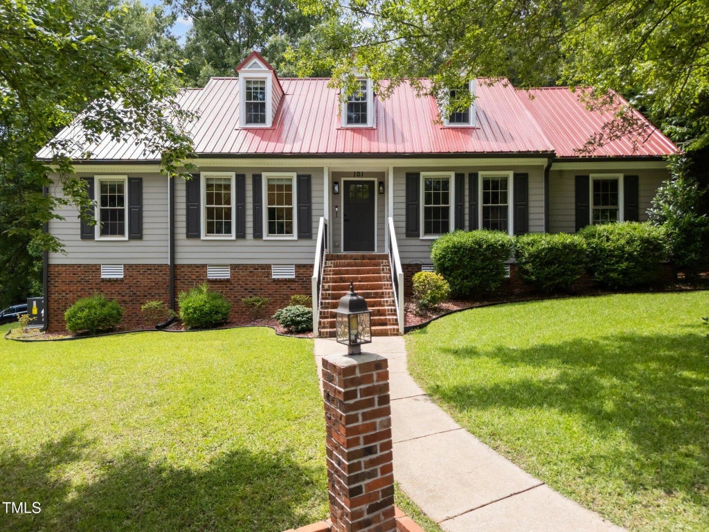 Welcome to this beautifully updated Cape Cod-style home, ideally located on a quiet corner lot in the desirable Dutchess Village neighborhood. With its timeless curb appeal and thoughtful modern upgrades, this home perfectly blends classic charm with contemporary convenience. Inside, you'll find gleaming hardwood floors and smooth ceilings throughout, creating a warm, elegant atmosphere. The light-filled kitchen is a true standout—designed for both everyday living and entertaining—featuring a multifunctional sink with glass rinser, a pot filler over the range, a stylish tile backsplash, Terrazzo-style solid surface countertops, stainless steel appliances (all less than 2 years old), and a built-in wine cooler. The main level offers a functional layout with a spacious primary bedroom and two additional bedrooms, while the private upstairs suite includes a large bedroom and a beautifully renovated bathroom with a soaking tub—ideal for guests or a peaceful retreat. Enjoy effortless indoor-outdoor living with multiple entertaining areas, including a rear deck, an attached storage room, and a low-maintenance, landscaped corner lot. Ceiling fans with remote controls are installed in every room, and major systems have been recently updated—including a brand-new downstairs HVAC unit (2025) and a water heater that's less than 2 years old. Conveniently located just minutes from shopping, dining, parks, and with easy access to downtown Cary, Raleigh, RTP, and major highways, this home offers the perfect combination of comfort, style, and unbeatable location. Don't miss your opportunity to own this move-in ready Cary gem!