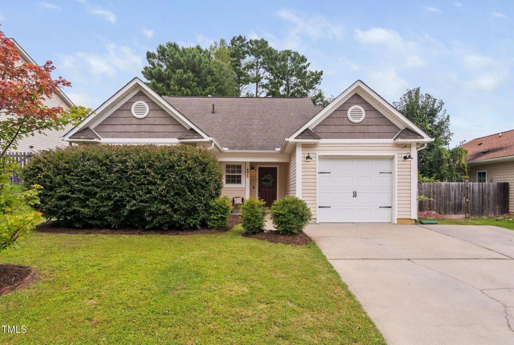 Lo and behold, the ideal ranch plan you've been on the hunt for is available! This home offers an open floor plan with a layout that has been thoughtfully designed. You'll also appreciate the easy maintenance exterior with vinyl siding. Inside, you'll find on-trend wide-plank LVP floors and heavy trim work, which gives a feeling of a model home with extra details. The kitchen features warm maple cabinets, a raised bar for additional seating, and a dining area, all of which open seamlessly to the family room with its gas log fireplace. Two guest bedrooms offer ideal flex space and share a hall bathroom. The primary suite is tucked back on the rear of the house for privacy and includes a walk-in shower and closet. Step outside to your private oasis, complete with a fenced yard, screened-in porch, and an upgraded paver patio with a grilling area. For our outdoor friends, you'll enjoy quick access to the Walnut Creek Trail that intersects with the Neuse River Trail. For concert goers, you are also near the amphitheater and have easy access to the highway.