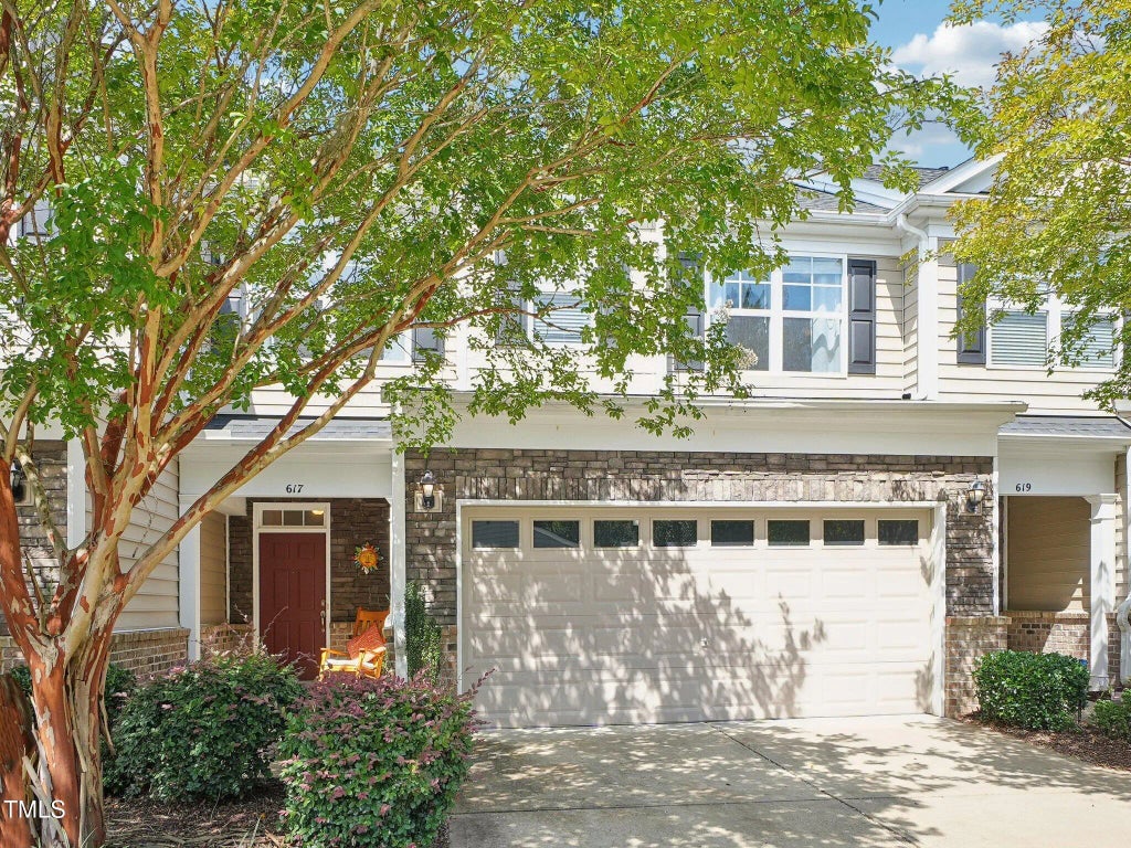 A beautiful well maintained townhome in the popular Carpenter Village neighborhood in Cary with 3 bedrooms and 2 1/2 baths. The light, open floor plan has a gas fireplace in the living room, hardwoods throughout the first floor, a built in desk area off of the kitchen and a large eat in kitchen. Granite counter tops, stainless steel appliances (including new Bosch dishwasher), and refrigerator included. Enjoy the neighborhood amenities (tennis & volleyball courts, pool, lake with gazebo), nearby park with playground, pond, and basketball/pickleball courts, fenced yard and private patio with trellis, firepit, and landscaped buffer. 2 car garage with suspended rack for bikes and supplies. Schools are wonderful -- lots of choices! Beautiful greenway and garden path to elementary school. Nearby public middle and high schools (Davis Drive MS and Green Hope HS) are highly rated, as well as Wake County Magnet and Charter and Private Schools. near to 4 grocery stores, cafe, fitness center, library, and 540 makes it only 20 minutes into central Raleigh! New water heater and HVAC coil in 2021, new roof in 2023. Won't last long!