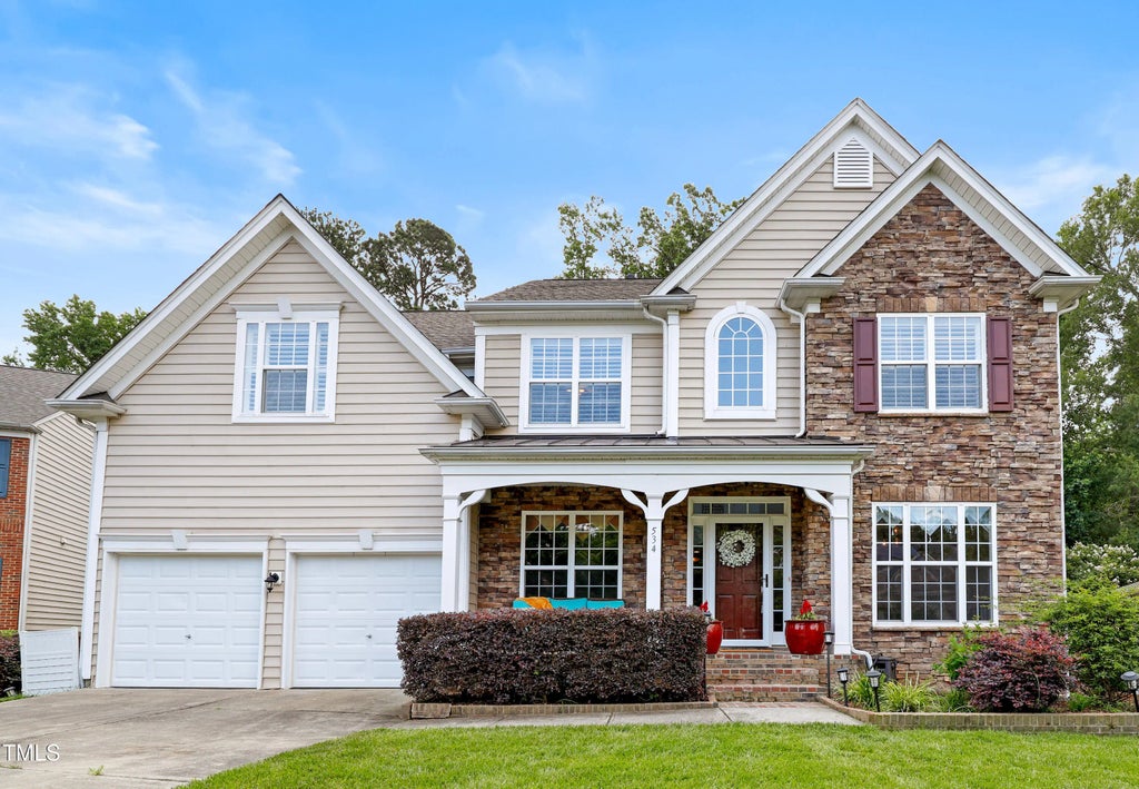 Welcome to this beautifully maintained and extensively updated 6-bedroom, 4.5-bath home located on a quiet cul-de-sac in the sought-after Blackstone at Amberly community. From its smart layout to high-end finishes and impressive upgrades, this home blends timeless elegance with modern comfort. Step inside the bright foyer to discover a formal dining area with wainscoting and a striking modern chandelier. Adjacent is a sunlit flex room, ideal for a home office or library. The heart of the home is the remodeled chef's kitchen (2020), featuring custom cabinetry, leathered granite kitchen countertops, premium stainless appliances, a massive center island, and stylish backsplash. The kitchen opens to a vaulted great room with a cozy gas fireplace and access to a stunning screened porch (added 2010) with slate tile floors, dual ceiling fans, a gas fireplace, and peaceful wooded views. A connected grill deck includes a built-in gas line for easy outdoor cooking. The main-level primary suite offers privacy and luxury, with plantation shutters, tray ceilings, and a fully renovated spa bath (2016) showcasing new tile flooring, a large walk-in dual-entry shower, and a custom barn door leading to a spacious walk-in closet. Also on the main level is a guest powder room and a laundry room with added cabinetry. Upstairs you'll find four bedrooms, including a Jack & Jill bath, a hall bath, and a large loft. Hardwood flooring was added in 2019 throughout the primary suite, hallway, and loft, and new carpet was installed in the remaining bedrooms (2023). The walk-out basement (renovated in 2016) is a showstopper: LVP flooring, a built-in wet bar with granite countertops and ice maker, and custom cabinetry. Enjoy game nights, ping pong, or host a movie night in the fully outfitted theater (added 2009) with 8 leather recliners, projector, and immersive sound system. A private bedroom, full bath, and flex space provide the perfect setup for guests or multigenerational living. Step outside to a beautifully expanded covered deck with bar seating, privacy fencing, and a built-in stone gas firepit, perfect for entertaining. Kids will love the screened playhouse tucked into the woods (added 2013). Additional highlights include built-in desks by California Closets (2012), upgraded lighting, wrought iron staircase balusters, tons of walk in storage space in attic and basement, and more. Enjoy resort-style living with access to Amberly's top-tier amenities, including two pools with slides, a fitness center, indoor basketball and pickleball courts, walking trails, concerts, and community events. Unbeatable location close to parks, shopping, Jordan Lake, RDU Airport, RTP, and easy access to Durham, Chapel Hill, and Raleigh. This home truly has it all. Don't miss your chance to call it yours!