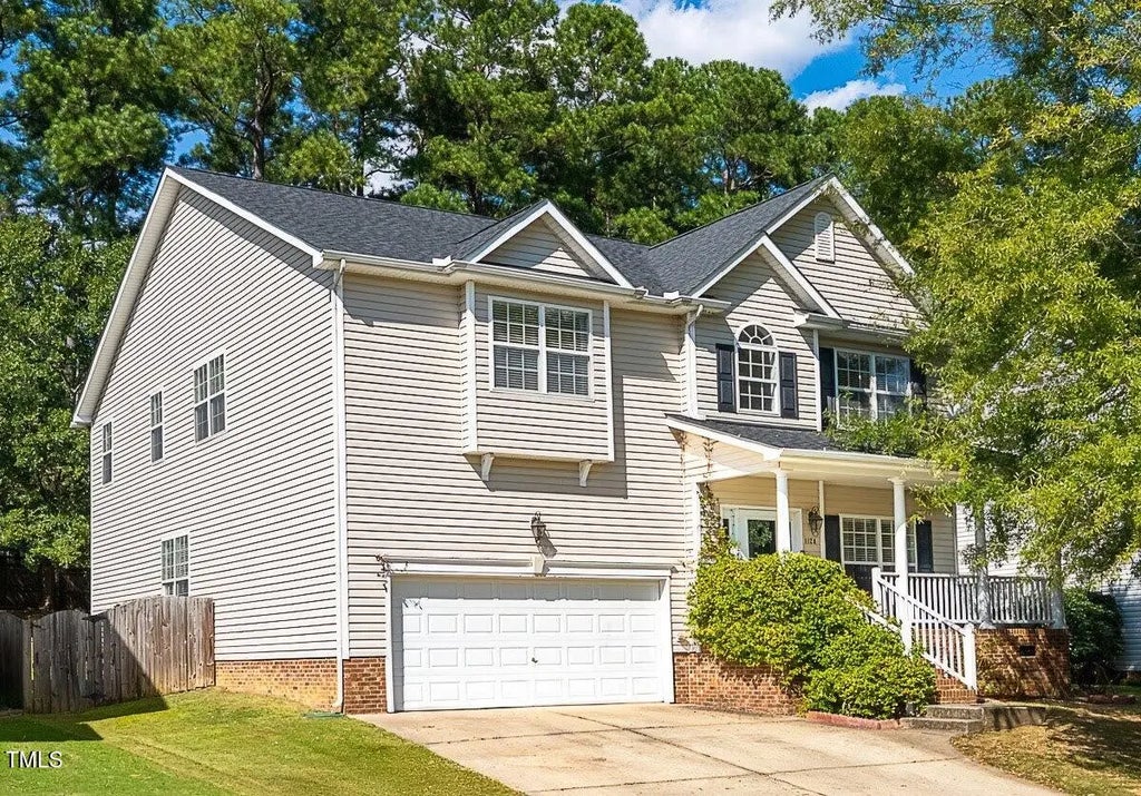 Welcome to 1124 Woodlands Creek Drive, a spacious 5-bedroom, 3-bath home in a popular Apex neighborhood with excellent schools. The first floor offers flexible living with formal living and dining rooms, plus a bedroom and full bath perfect for guests or a home office. The large kitchen provides abundant storage and connects easily to the main living spaces, creating an ideal setup for both everyday life and entertaining. Upstairs, the oversized primary suite is a true highlight, featuring a completely renovated bathroom with dual vanities, an enclosed tiled shower and freestanding tub. Four additional bedrooms, including one on the first floor, provide space for everyone. A versatile loft upstairs adds even more options for a media room, study, or playroom. Outside, enjoy a fenced backyard with plenty of room to play, garden, or entertain, plus a two-car garage for added convenience. With its generous layout, updated primary suite, almost new roof (2024), newer HVAC (2023), and prime Apex location, this home is ready to welcome its next chapter.