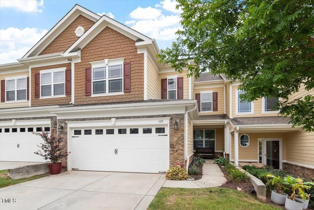 Motivated Sellers! What a find and deal! This spacious abode offers 2649 square feet of beautifully crafted living space. Lovely L shaped private entry. 2 car garage. Step inside to admire the gorgeous hardwood floors that grace the entire first level. The chef's kitchen is a highlight, featuring a light bright and inviting atmosphere with granite island and counters, pendant light & SS appliances perfect for culinary adventures. Relax by the cozy gas fireplace in the family room with mantle. Enhanced separate dining room with wainscotting. Formal living room is perfect for a home office area. All new carpets and paint throughout, and a unique, huge walk-up 3rd-floor storage area with over 336 square feet. The primary bedroom stands out with a trey ceiling, and an En suite featuring granite counters, garden tub, & walk in shower. Relax out back with your very own screened in porch oasis overlooking fresh vegetation and flowers, plants & stone patio. Enjoy the convenience of a washer, dryer, and refrigerator that convey! TV & sound bar in family room, and ceiling projector on 2nd level also stay with the home. Low maintenance and included lawn service and exterior coverage all included in HOA! Woodcreek has resort like amenities featuring a huge pool, lazy river, tornado slide, fitness center, clubhouse, tennis courts and a new greenway trail to walk, jog, or bike!