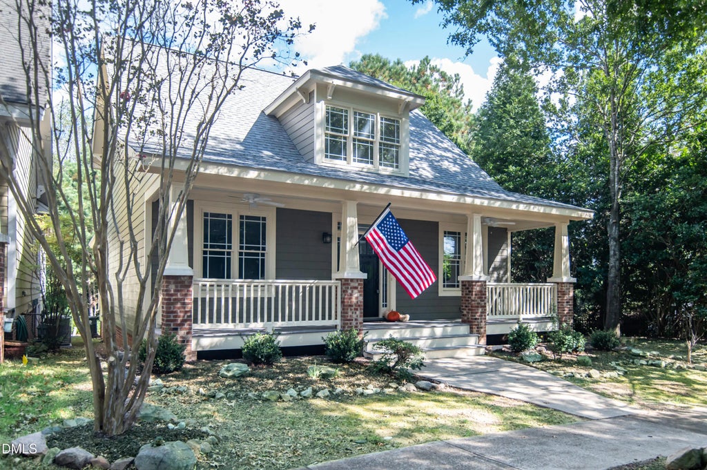 Welcome to this beautifully updated bungalow in the highly sought-after Bedford at Falls River community! Freshly painted inside and out and boasting a newer roof, this home is as move-in ready as they come. Step inside to a warm and inviting floor plan that includes a rare first-floor guest suite, ideal for overnight visitors, extended stays, or multigenerational living. Thoughtful updates blend seamlessly with timeless charm, creating a space that is both stylish and functional. The heart of the home offers comfortable living and dining areas with gorgeous Brazilian cherry hardwoods. Just one block away, enjoy all the neighborhood amenities that make Bedford so special — pool, tennis, and pickleball courts are right around the corner, offering year-round opportunities for recreation and connection. Known for its tree-lined streets, welcoming front porches, and vibrant community spirit, Bedford at Falls River has long been one of Raleigh's most cherished neighborhoods. With this home's prime location, thoughtful updates, and unbeatable access to amenities, you'll find the perfect blend of comfort, convenience, and lifestyle all in one!