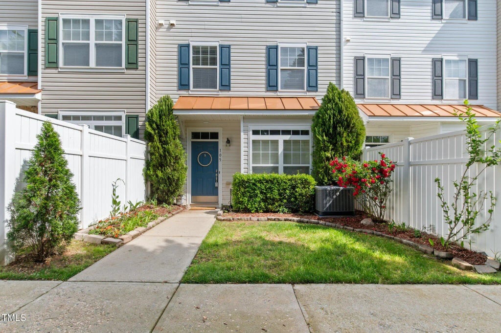 This stunning interior-unit townhome-style condo offers the perfect blend of comfort, style, and convenience. Step inside to discover gorgeous laminate flooring, soaring 9-foot smooth ceilings, and a bright, open-concept floor plan—ideal for entertaining guests or unwinding after a long day. The updated kitchen features sleek granite countertops, modern fixtures, and ample cabinetry, making it a dream space for home chefs and entertainers alike. The oversized primary suite is a true retreat, complete with a vaulted ceiling, walk-in closet, and custom built-in bookshelves and mantle—perfect for displaying your favorite books or creating a cozy reading nook. Additional highlights include ceiling fans throughout, custom trim molding, and a thoughtfully designed layout that flows seamlessly from room to room. Whether you're enjoying a quiet evening in or hosting friends, this home offers warmth, charm, and functionality in equal measure. Located just minutes from popular Bedford, you'll enjoy easy access to shopping, dining, and entertainment options. Prefer a relaxing weekend at home? Take advantage of the community pool and enjoy resort-style amenities just steps from your door. Don't miss this rare opportunity—there's nothing else quite like it in Raleigh!